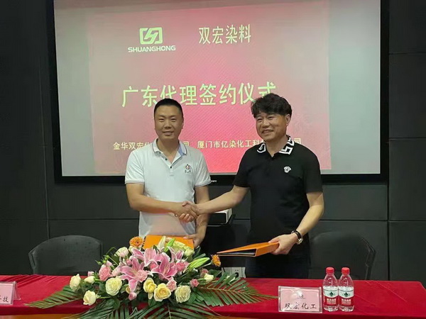 與金華雙宏化工有限公司總經(jīng)理徐建新簽約雙宏牌染料廣東省總代理